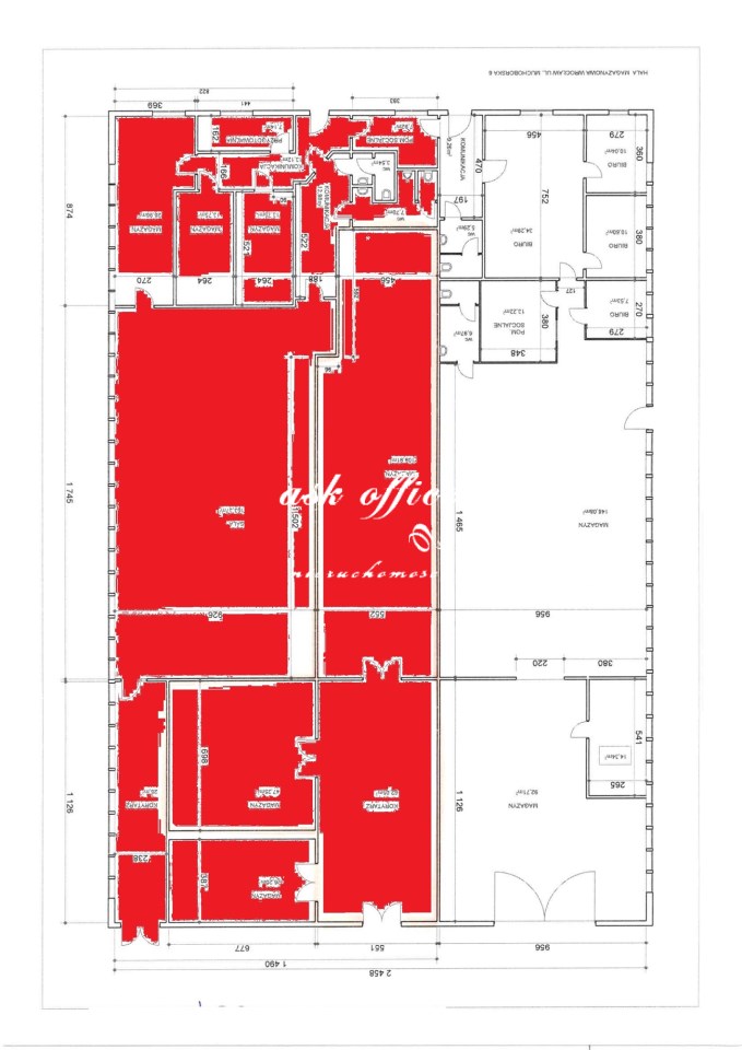 Obligatoryjnie z powierzchnia biurową o powierzchni 245 m2 (open, space trzy pokoje 15,44;23,67;56,98m2), socjal, łazienka