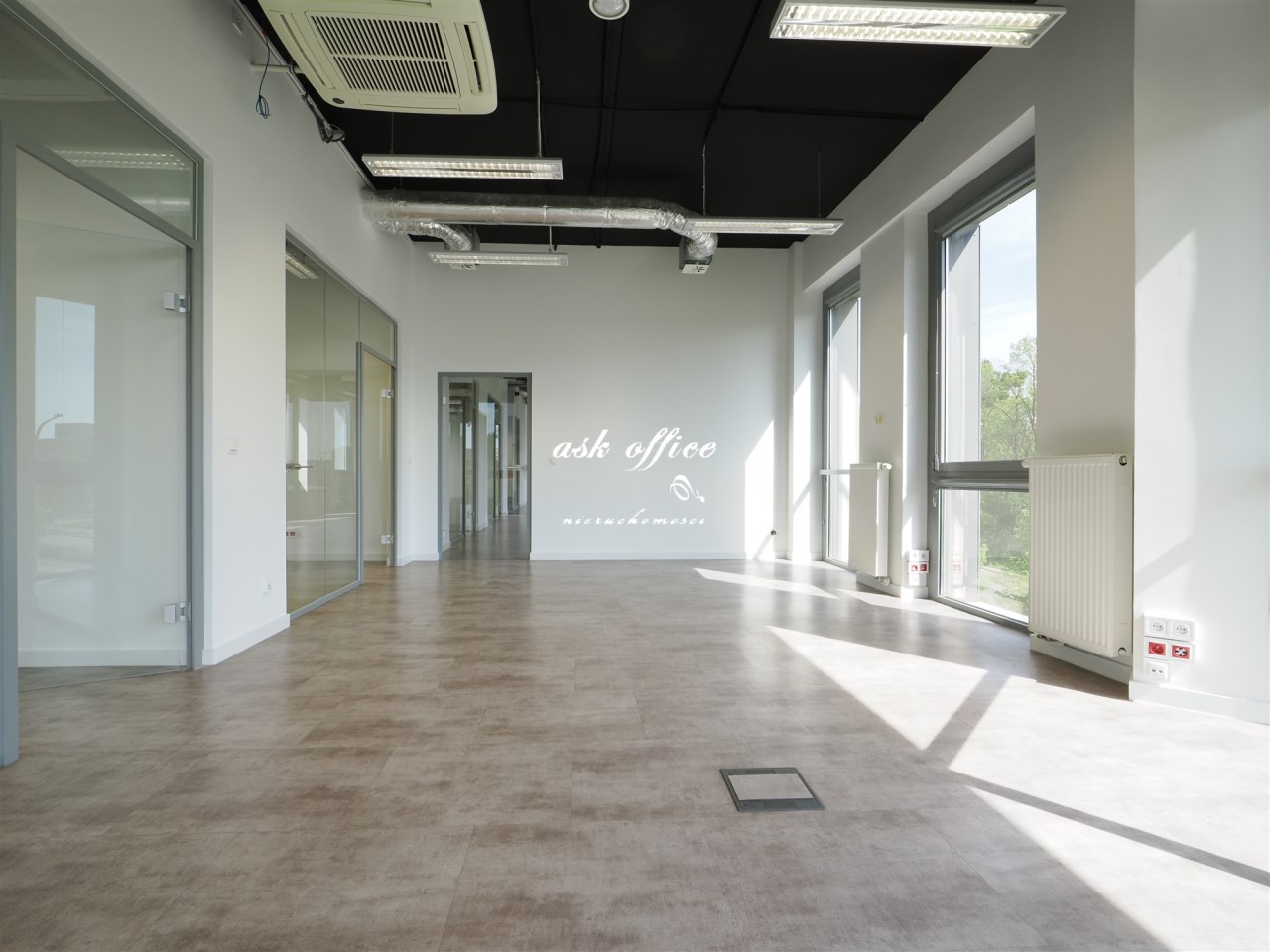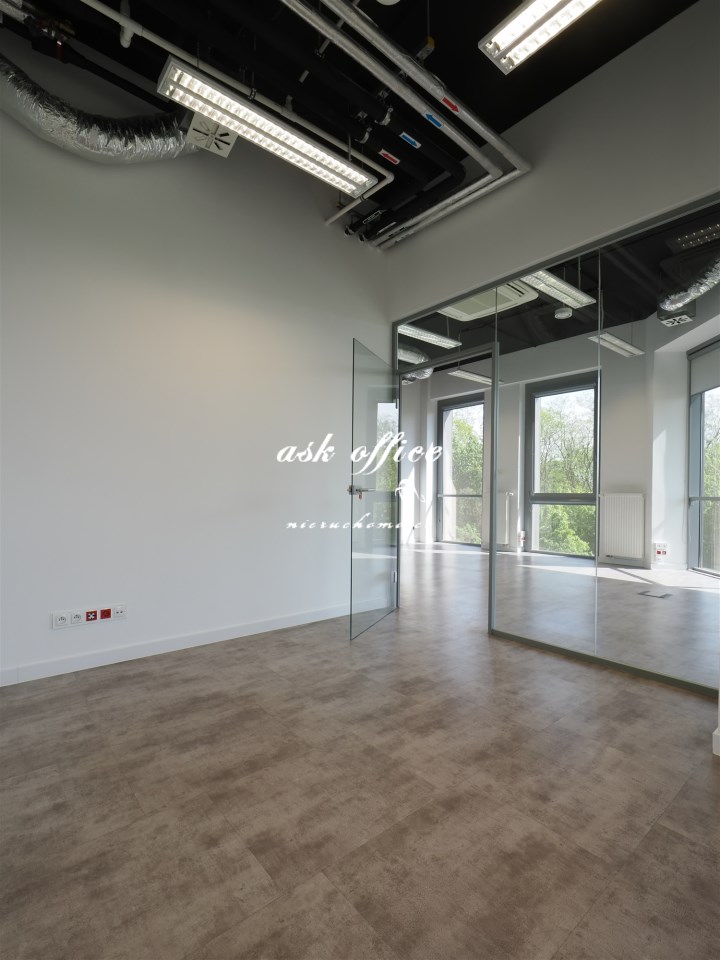 Hol, open space, gabinet, duża salka konferencyjna, pokój, cztery małe salki, kuchnia.