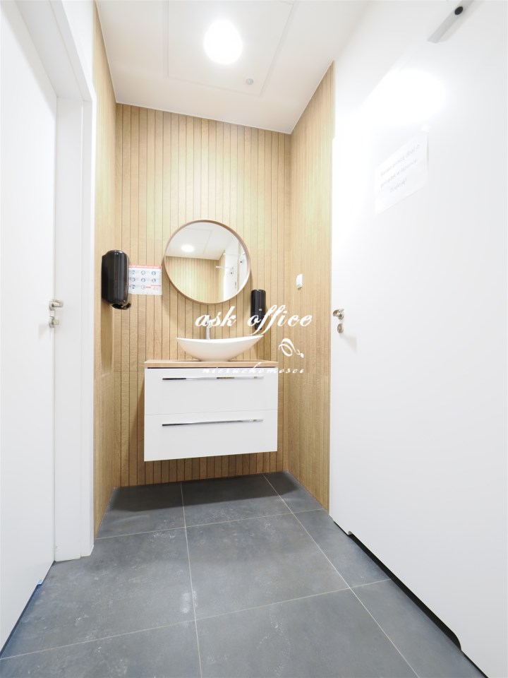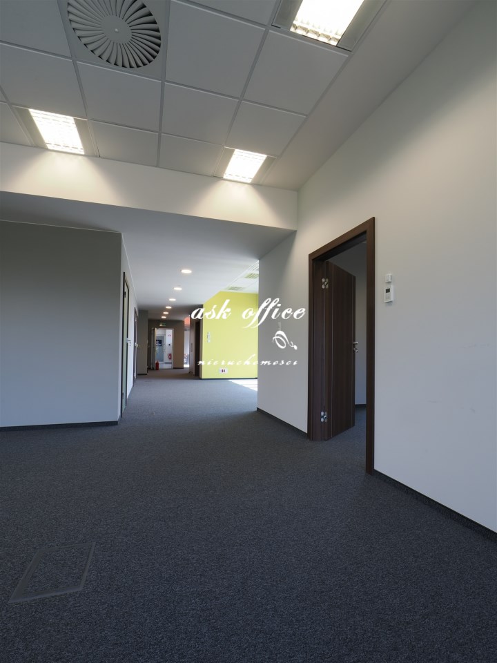 Hol, open space, dwa gabinety, dwie salki konferencyjne, kuchnia, toalety.