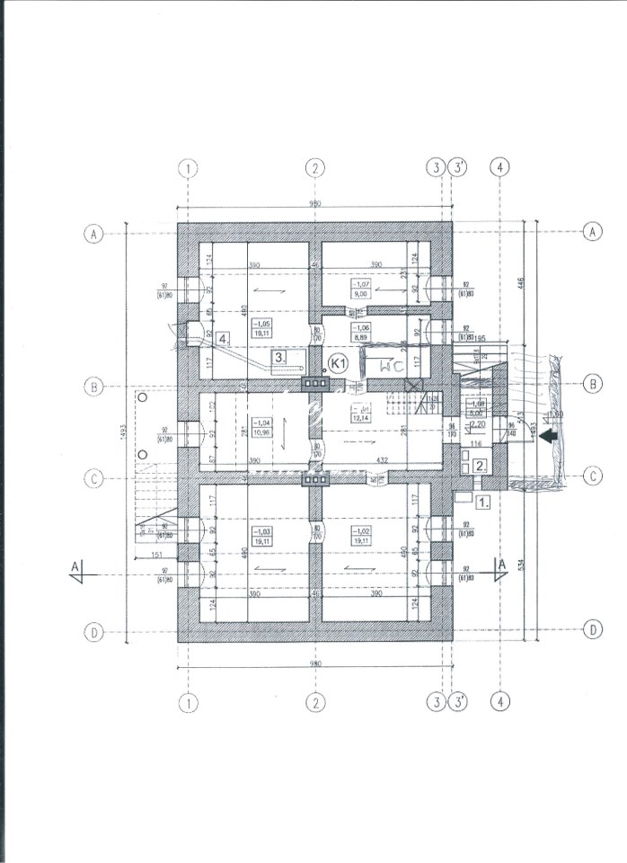 Lokal 110 m2 składający się z holu, pięciu pokoi, aneksu kuchennego, toalety. łazienki z kabiną prysznicową