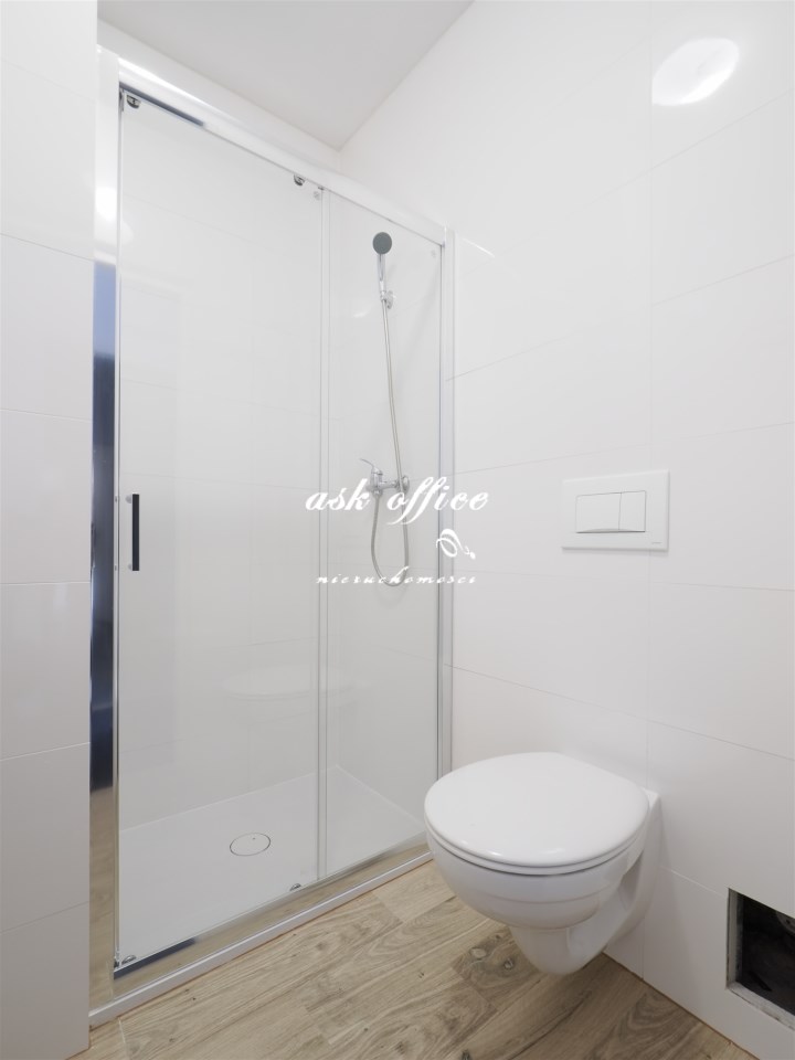 Pokój biurowo-usługowy z łazienką na wyłączność wyposażoną w kabinę prysznicową.