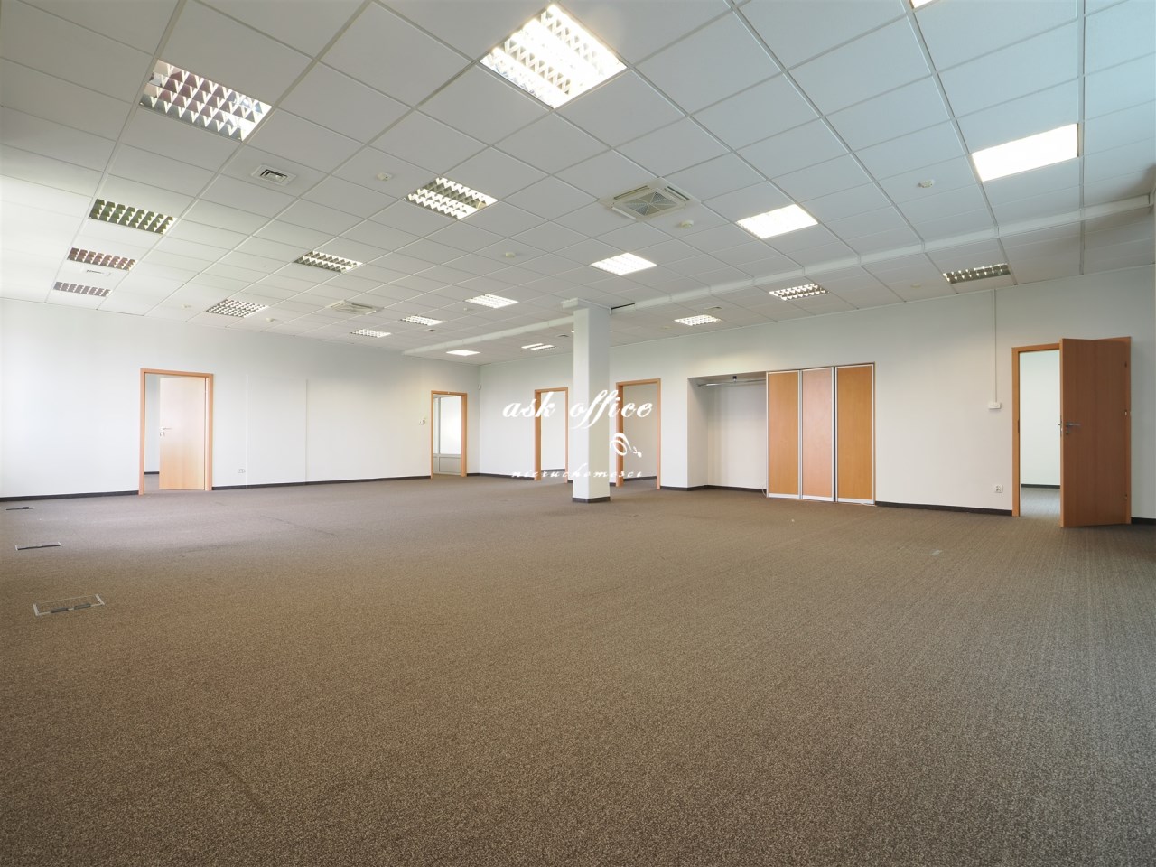 Hol, open space, pokoje zamknięte, gabinet, dwie salki konferencyjne.