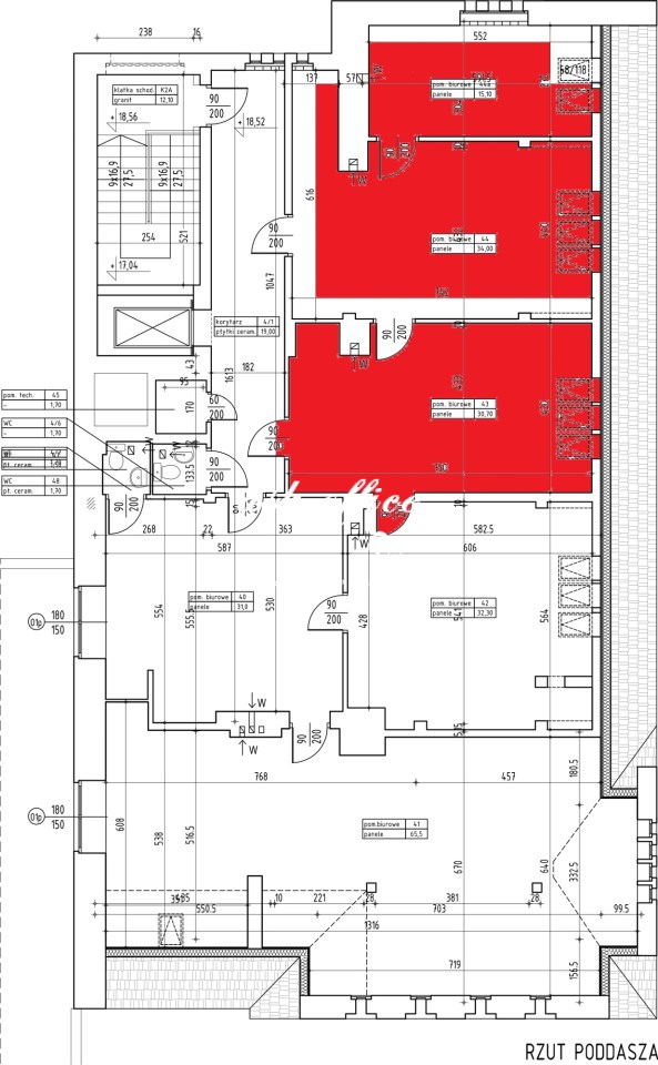 Prezentowana powierzchnia to lokal o powierzchni 80 m2 usytuowany na IV p kamienicy biurowej.