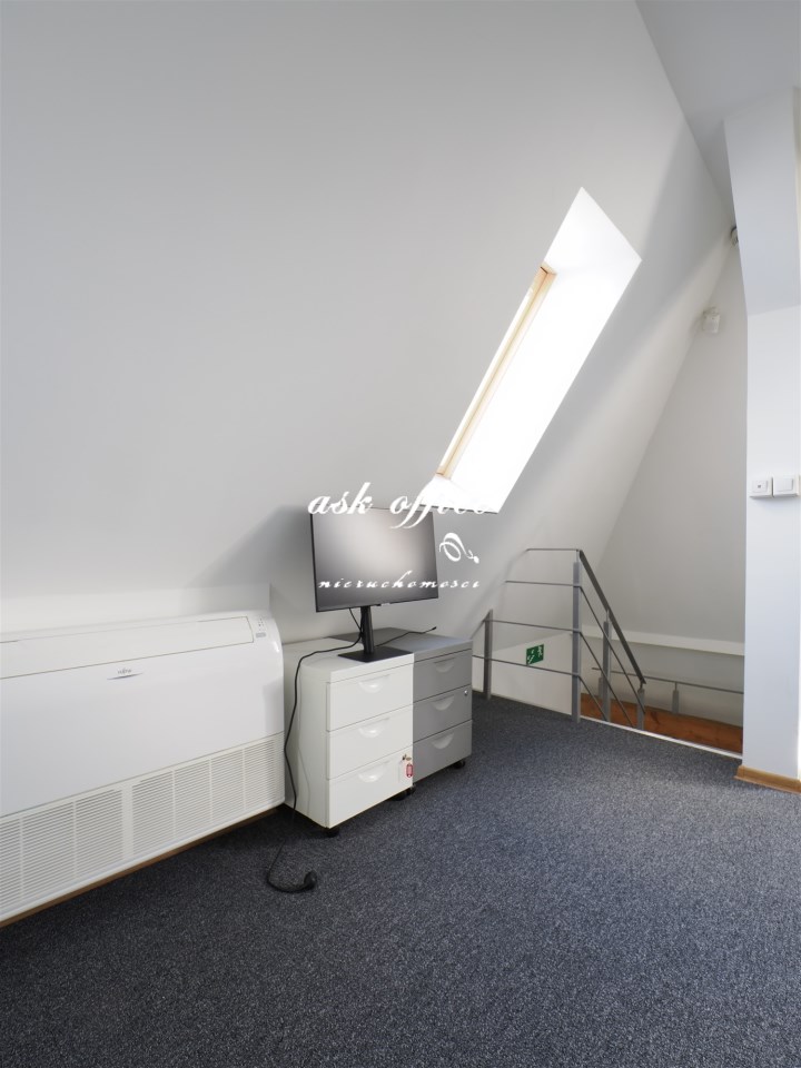 Open space, dwa gabinety, kuchnia, toaleta, antresola.