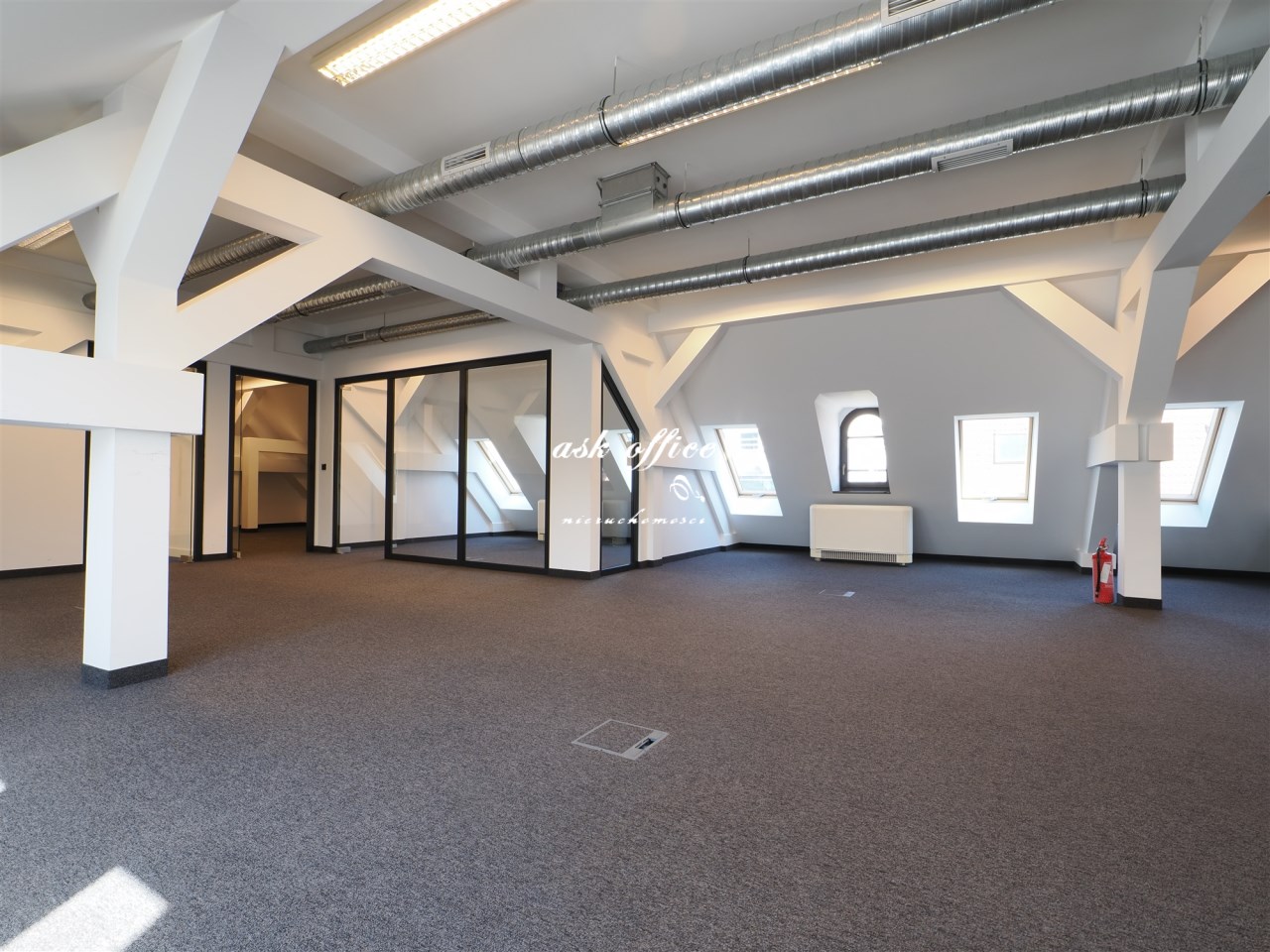 Powierzchnia otwarta ,dwi salki konferencyjne, gabinet, socjal, toaleta.