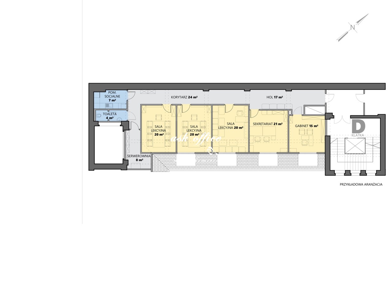 Powierzchnia otwarta ,salka konferencyjna, gabinet ,socjal, toaleta.