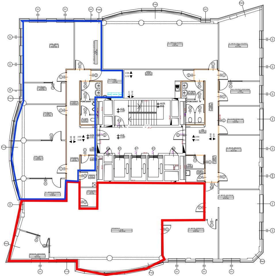Open space, dwa pokoje trzy salki konferencyjne, socjal, łazienki