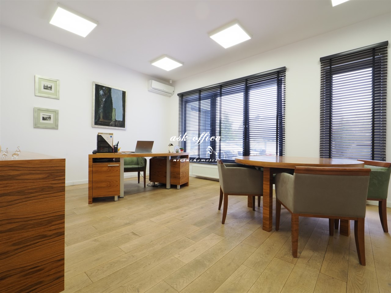Parter- open space, sekretariat, dwa pokoje biurowe, magazyn kuchnia, dwie toalety.