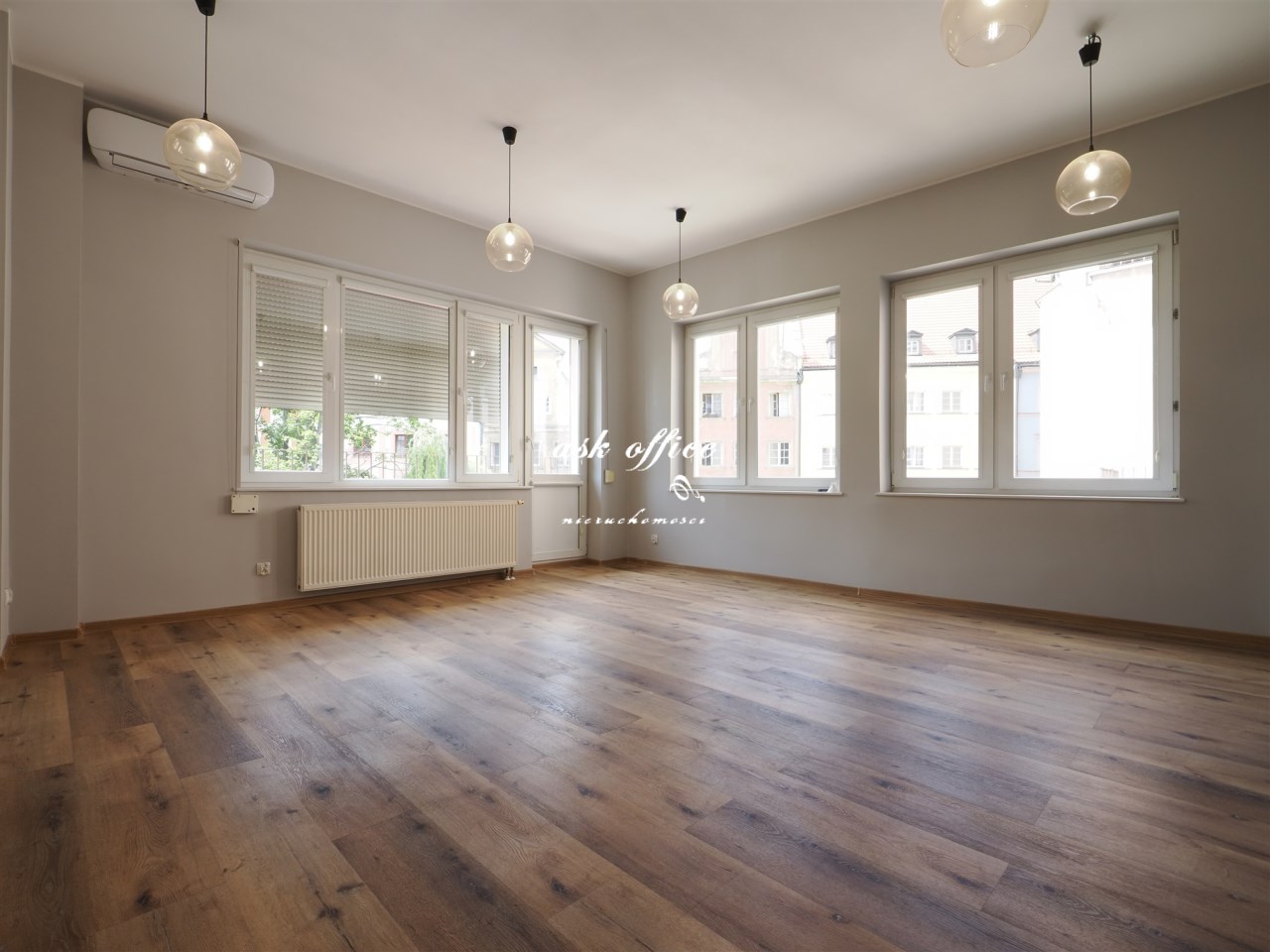 Okolica pl. Solny we Wrocławiu. Prezentuje lokal o powierzchni 68 m2 usytuowany na I kondygnacji kamienicy biurowej. Wymieniona powierzchnia składa się z przedsionka, powierzchni otwartej z aneksem kuchennym, gabinetu łazienki z kabina prysznicowa. Obiekt wyposażony w windę. Do podstawowego czynszu najmu należy doliczyć opłatę za media 15-20 zł/m2.