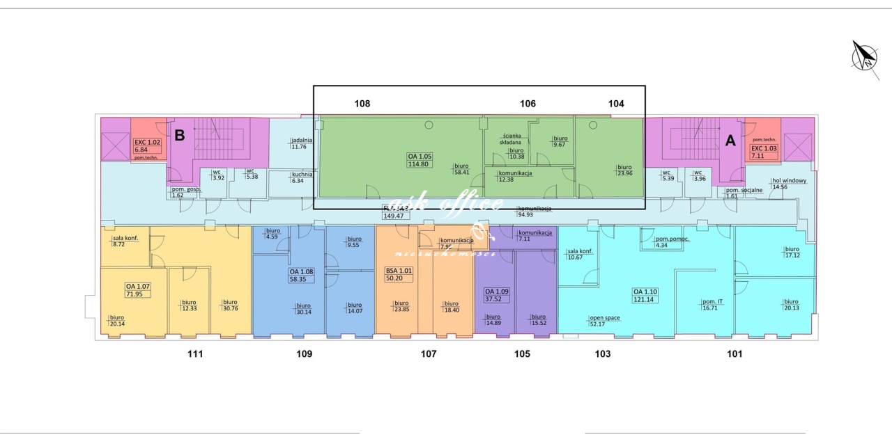 Proponowana powierzchnia: 115 m2 - open space + dwie salki konferencyjne, gabinet, komunikacja.