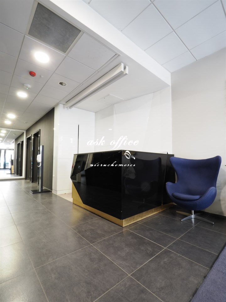 Hol, open space, dwa gabinety, dwie salki konferencyjne.