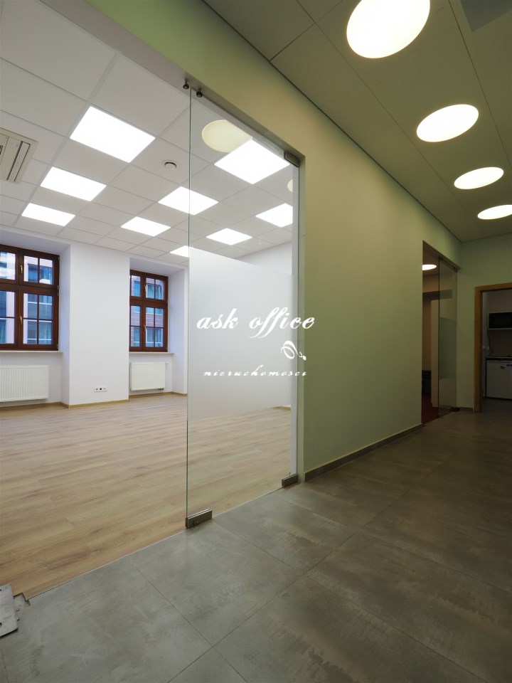 Przedmiotem oferty jest lokal usytuowany na II piętrze luksusowej kamienicy biurowej posadowionej w bliskim sąsiedztwie wrocławskiego Rynku. Lokal o powierzchni 129 m2. Wymieniona powierzchnia składa się z sekretariatu, dwóch salek konferencyjnych , gabinetu, pokoju, kuchni. Lokal posiada okablowanie strukturalne, instalacje wentylacyjno-klimatyzacyjną. Na tym samym poziomie komfortowe łazienki. Stylowy obiekt wyposażony w windę. Na parterze recepcja. Oferta skierowana do wymagających klientów. Współczynnik części wspólnych 15%. Opłata eksploatacyjna 7,00 zł/ m2 + opłaty za media. Zapraszam na prezentacje. ASK OFFICE, Anna Skwarciak, nr tel. 609 842 932,